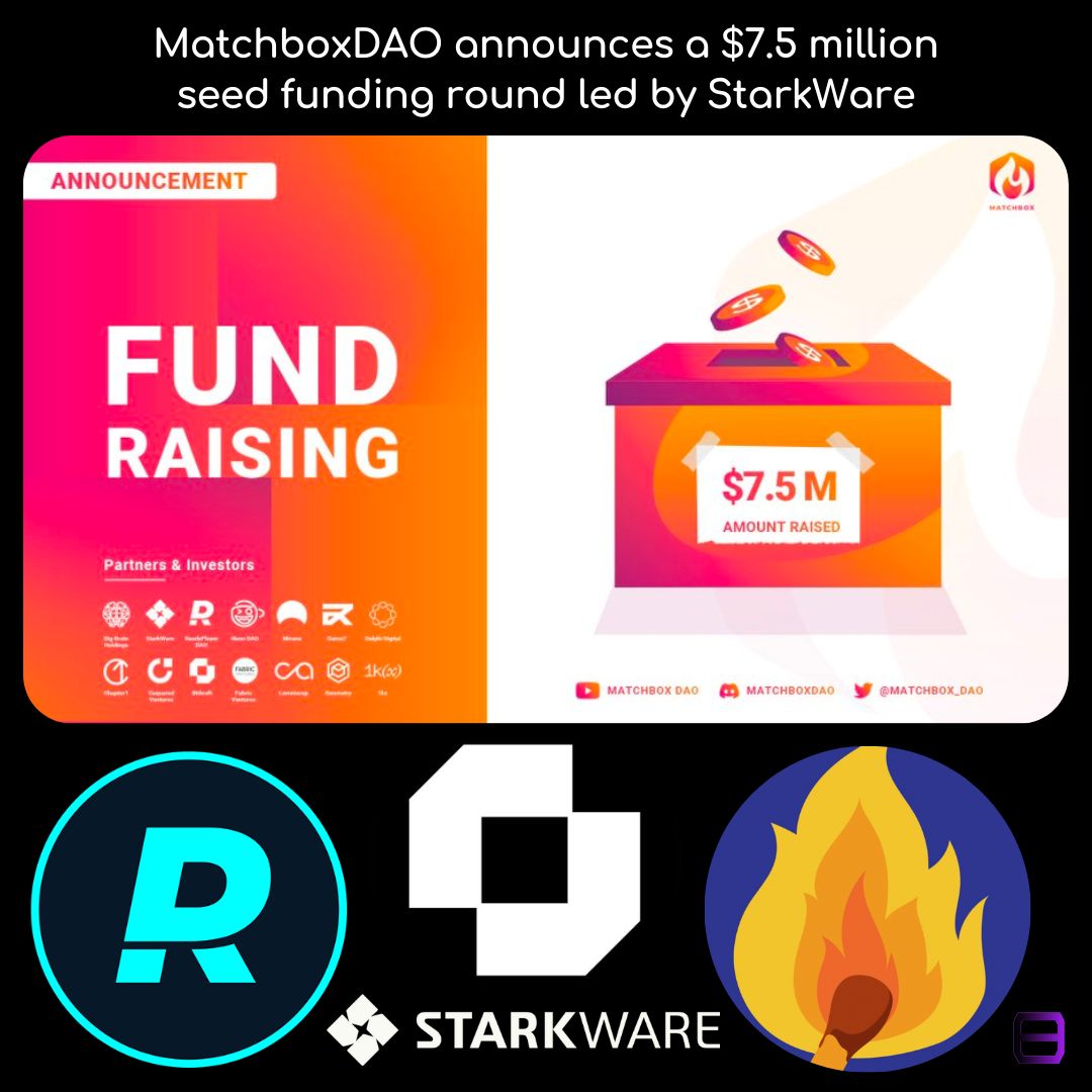 On-chain game developer community MatchboxDAO recently announced a $7.5 million seed funding round. Investors in the round included: StarkWare, Geometry Research, ReadyPlayerDAO, Neon DAO, Delphi Ventures, Lemniscap, Fabric Ventures, Road Capital, Formless Gamma, and Bonfire Union. The round also saw participation from individual investors including Stateless Ventures founder Matt Slater and The Block’s VP of Research Larry Cermak.