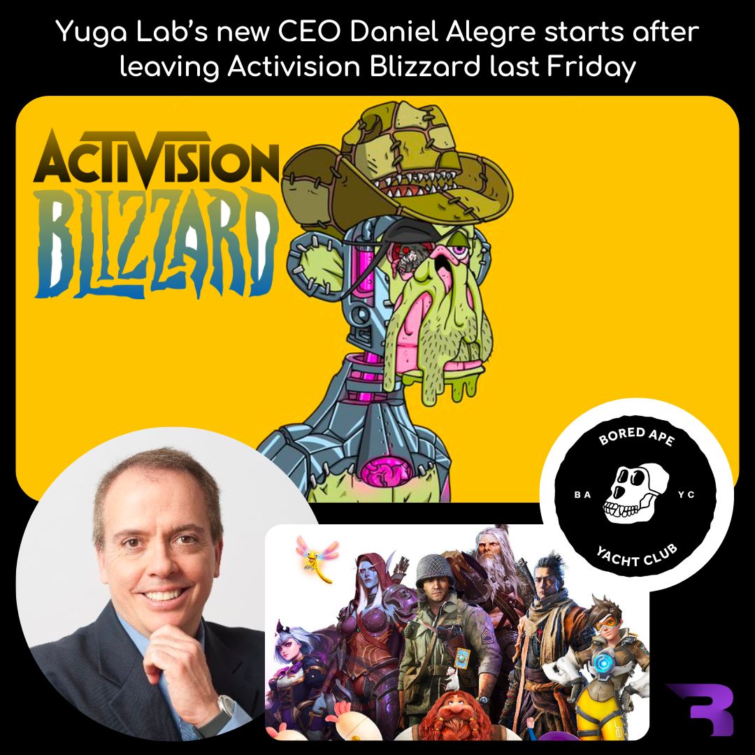 Now Yuga Labs, the web3 startup behind Bored Ape Yacht Club, has appointed the former Activision Blizzard president and COO Daniel Alegre as the company’s new CEO, effective in the first half of 2023. Daniel Alegre was only named president and chief operating officer of Activision Blizzard in April 2020. Blizzard is known as the powerhouse gaming company behind titles like Call of Duty, World of Warcraft, and more.